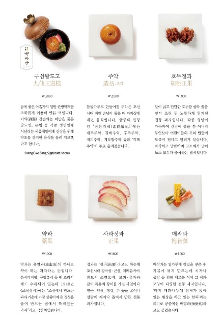 - 생과방 '호궤소' 방문 → 궁중병과 및 약차 선택 → 비용 (카드) 결제 → 좌석 배정 및 안내 → 다과 시식