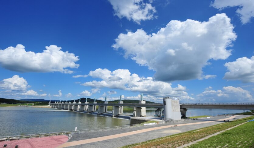 남한강을 가로지르는 웅장한 위엄을 자랑하는 여주보는 세종대왕의 위대함을 모티브로 설계되었습니다. 자격루를 재해석한 하부기둥과 남한강의 잔잔한 물결을 붉게 물들이며 떠오르는 일출이 장관을 이루며, 산과 바다에서 볼 수 있는 일출과는 다른, 문명과 자연이 조화를 이룬 독특한 감동을 선사합니다.