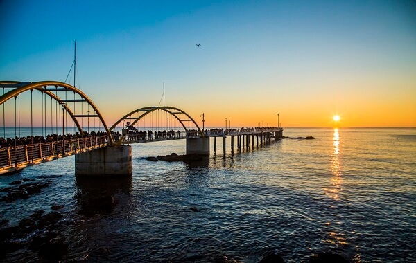 당사항 해양낚시공원의 용바위와 넘섬이 이어진 바다 위 산책로에 서면 천혜의 자연경관을 비추는 아름다운 일출을 감상하실 수 있습니다. 당사마을에서 승천했다는 전설을 가지고 있는 용 조형물은 떠오르는 태양과 어우러져 더욱 역동적이고 신비로운 분위기를 자아냅니다. 가운데 부분이 투명한 유리로 되어 있어 마치 바다 위를 걷는 듯한 해양낚시공원의 다리는 건너면 일출을 더욱 가까이에서 맞이하실 수 있습니다.