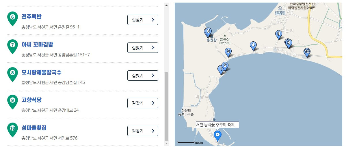 동백나무숲, 성경전래지 기념관을 다녀온 관광객에게 주꾸미 요리장터 식사비용 할인
