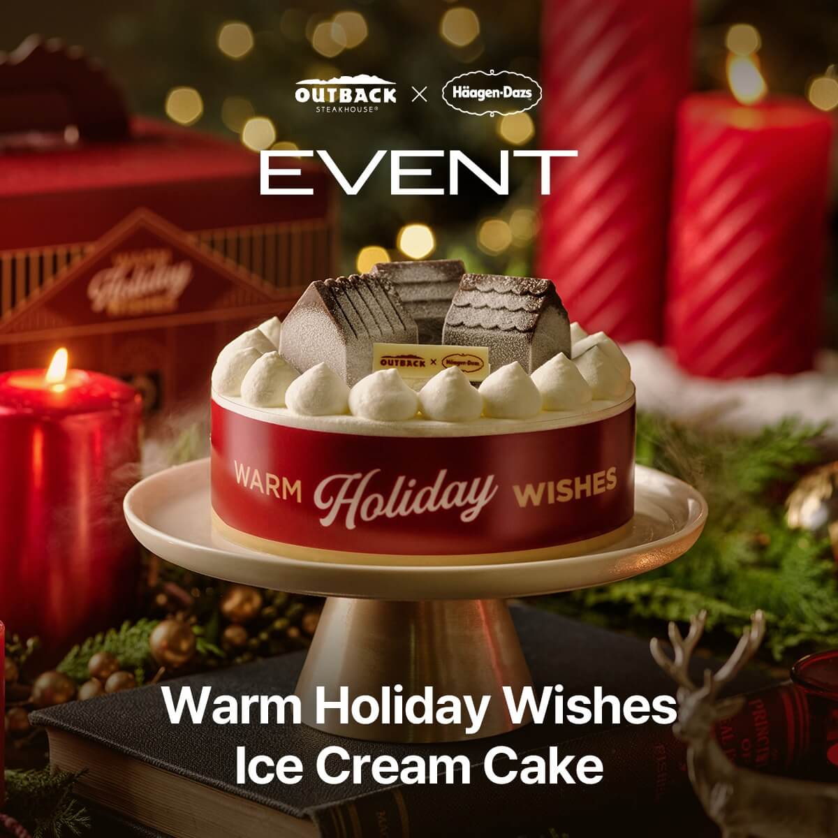크리스마스 케이크로 아이스크림 케이크를 좋아하시는 분들을 위한 아웃백, 하겐다즈 한정판 웜 홀리데이 위시 아이스크림 케이크의 가격, 구매하는 법 정보입니다.