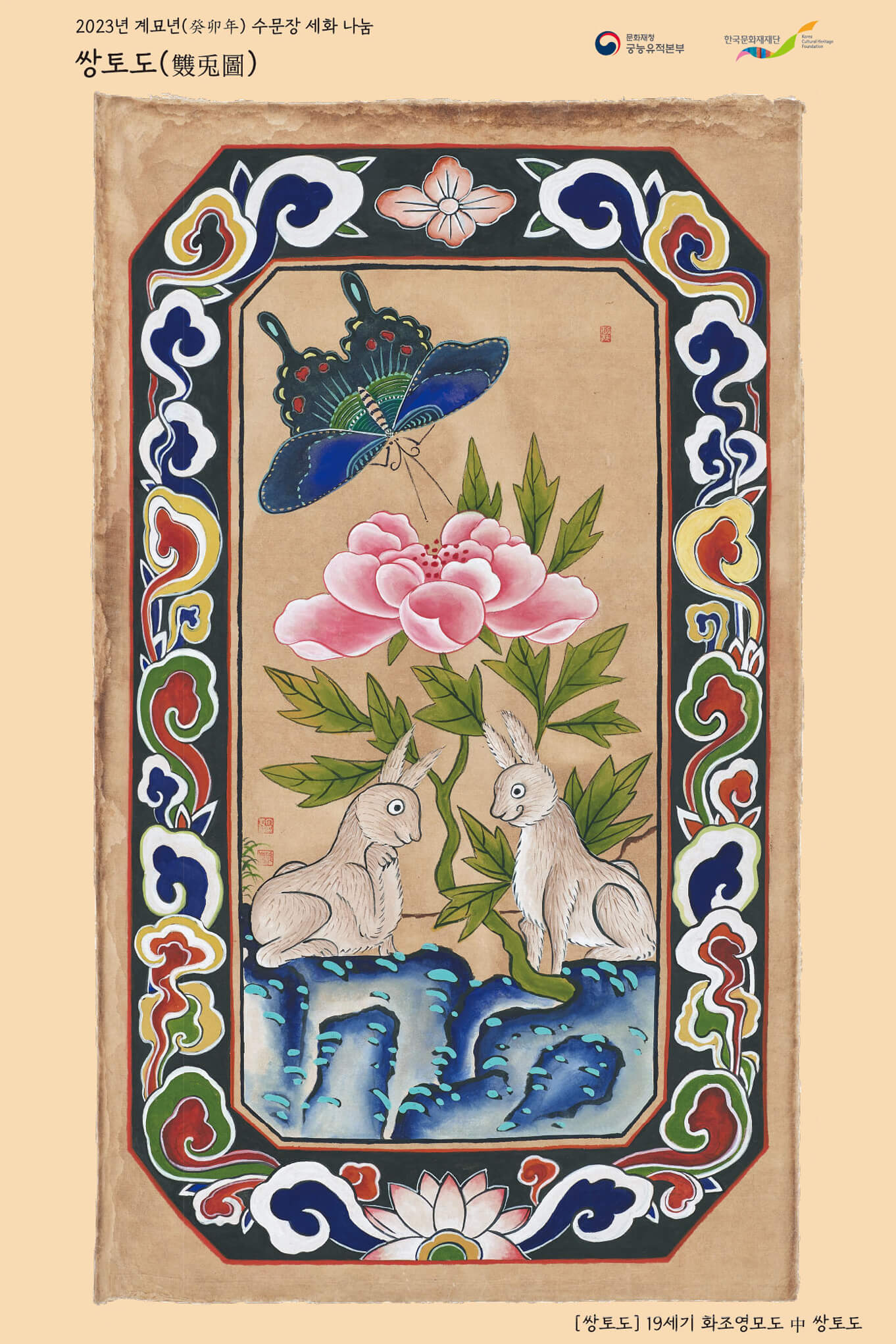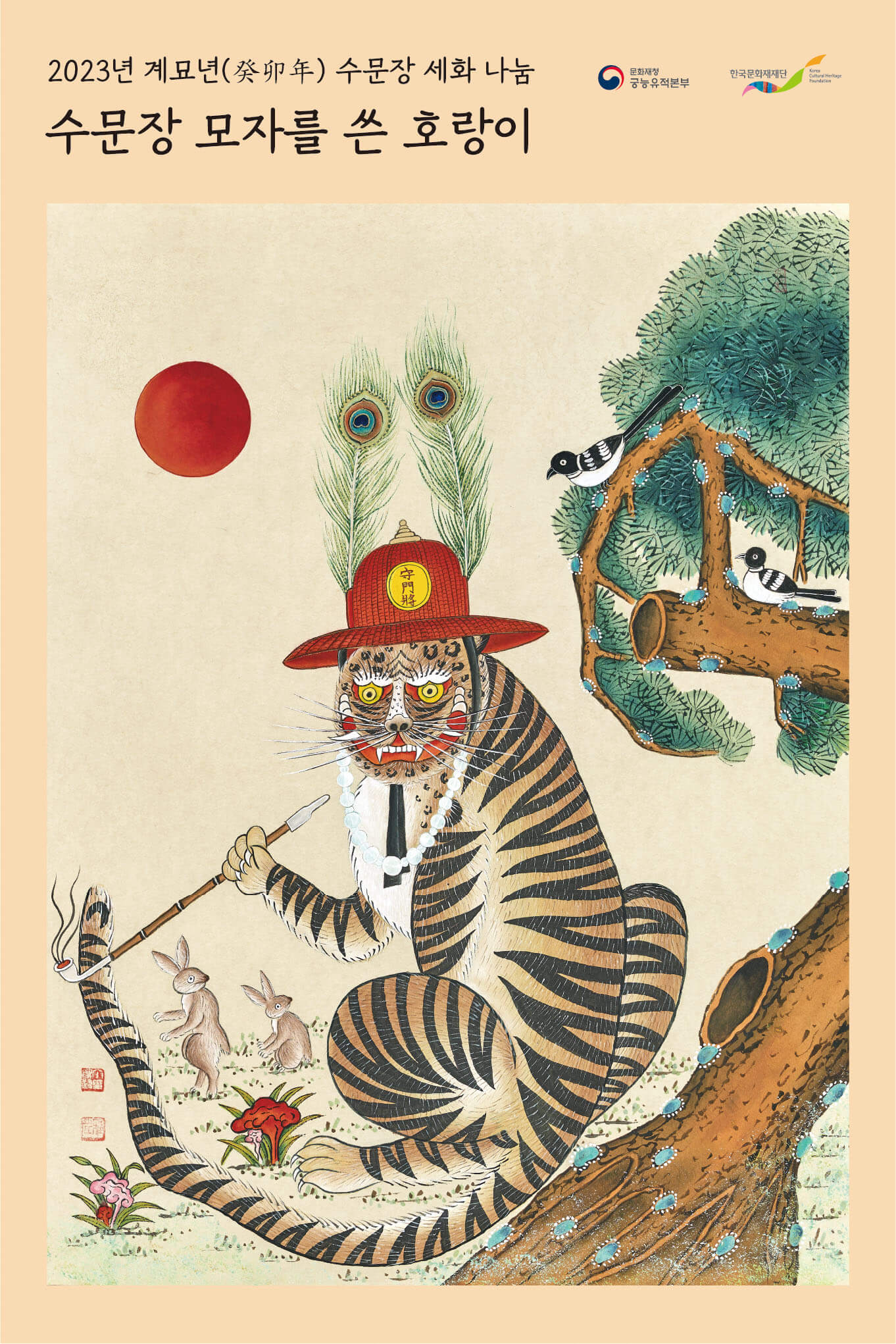 - 강인한 힘과 용기를 상징하는 '경복궁 수문장 모자를 쓴 호랑이', 부부의 금슬과 가족의 화목을 상징하는 두 마리의 토끼가 그려진 '쌍토도'