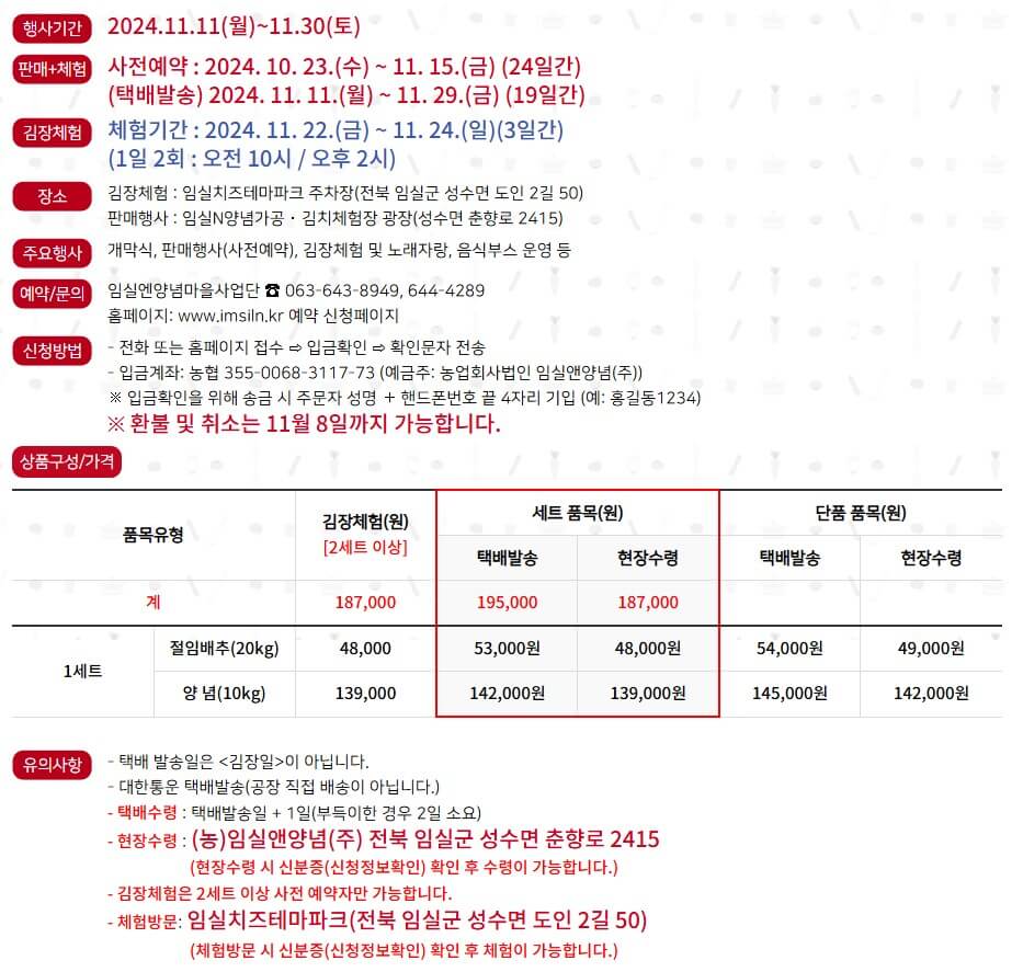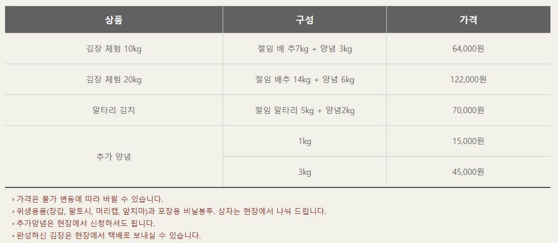 참가비 185,000원 (절임배추 20kg + 양념 10kg)