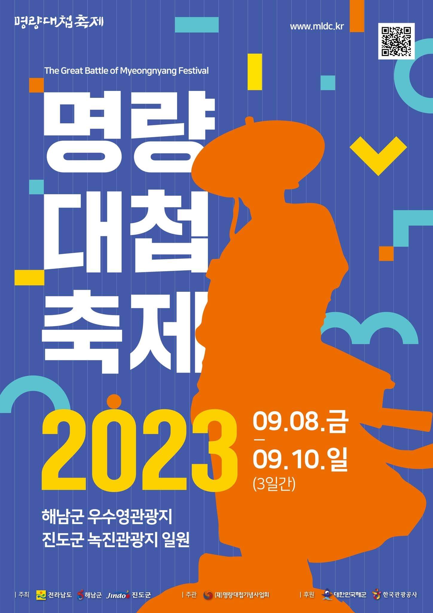 이순신 장군이 울돌목에서 일본 수군을 대파한 해전 명량대첩의 정신과 역사를 기리기 위한 명량대첩축제가 9월 8일 개막합니다. 출정 퍼레이드, 해군 해상 퍼레이드, 공군 블랙이글스 에어쇼, 불꽃 드론 라이트쇼, 불꽃쇼, 국립 남도국악원 축하공연, 수문장 교대식, XR이머시브 미디어해전 등 다양하고 화려한 볼거리와 함께 전라도의 향토음식까지 즐기실 수 있습니다. 또한, 초대가수 노브레인의 공연이 9월 8일 오후 9시 해남 우수영관광지 명량무대에서 펼쳐집니다.